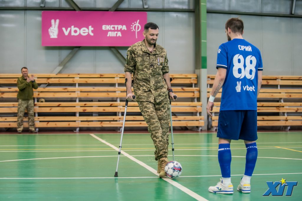 Головний сержант взводу 204 Окремого батальйону ТРО м.Києва 241 бригади Юрій Цикаленко відкрив матч плей-офф української футзальної Екстра-ліги 22/23 “ХІТ” (Київ) – “Сокіл” (Хмельницький):