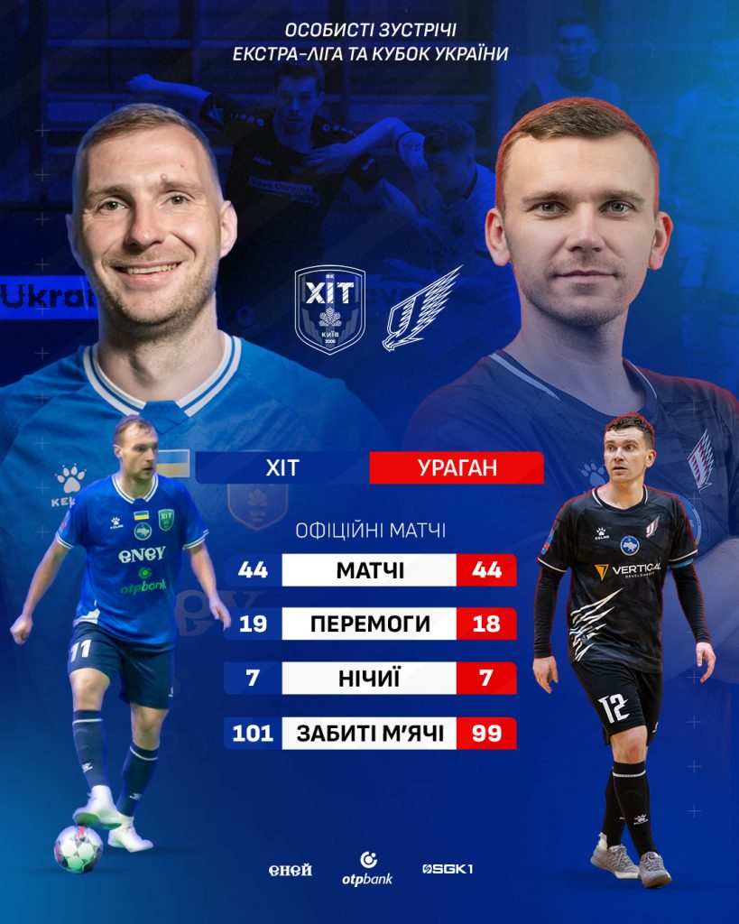Кубок України: 8 матчів – 3 перемоги “ХІТа” (1-пен.); 1 нічия; 4 перемоги “Урагана” (1-пен.); Забиті м’ячі: 15-16
