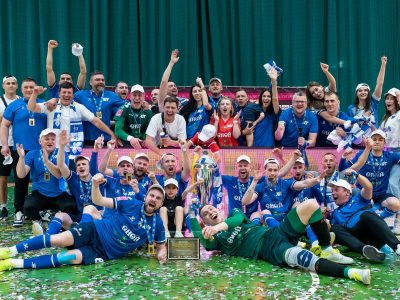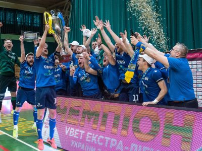 Святкування після перемоги у вирішальному, п’ятому матчі фінальної серії VBET Екстра-ліги 22/23 проти івано-франківського “Урагана” (3-2)